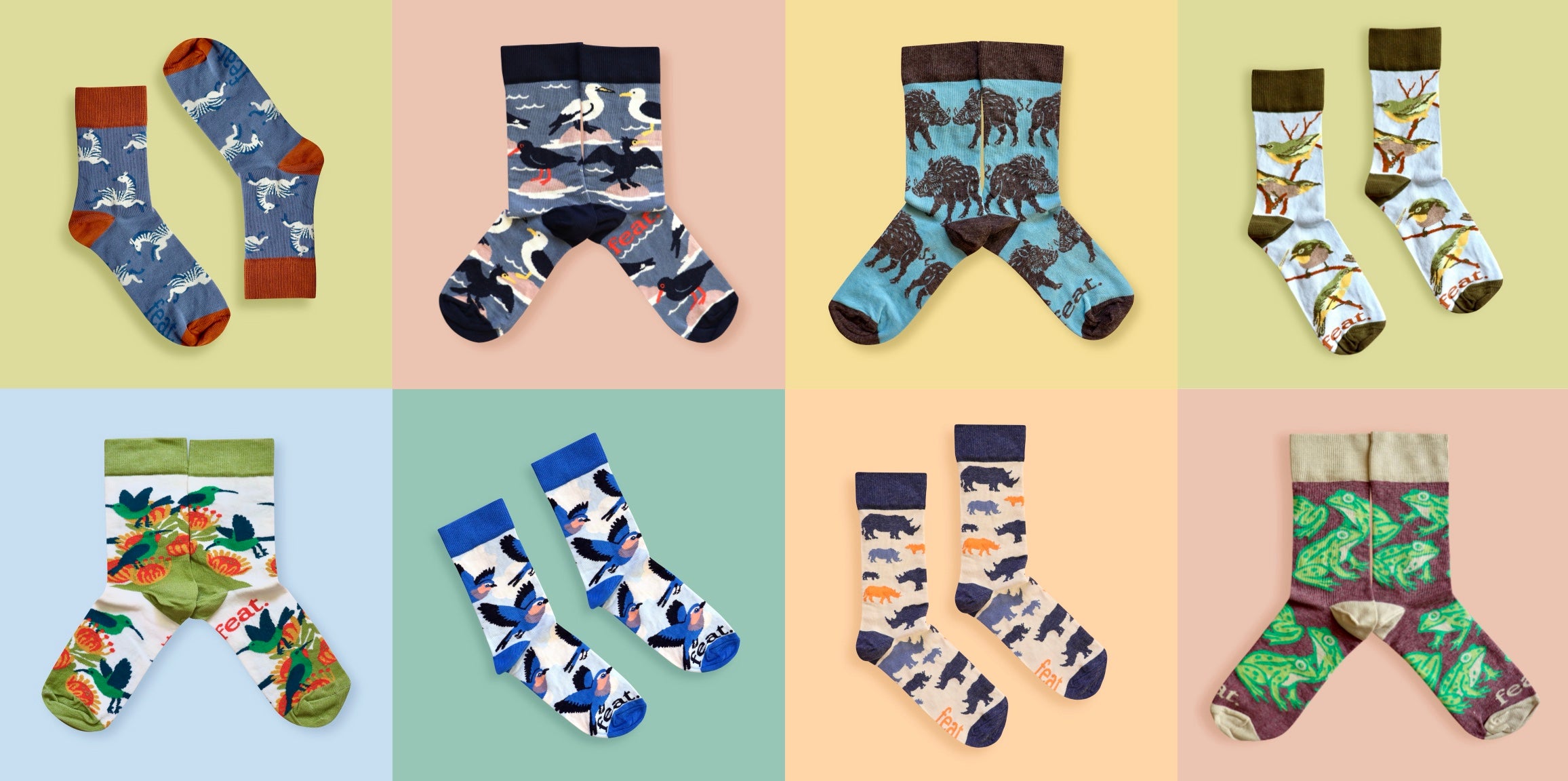 Feat. is a gifting and accessories brand from Cape Town, South Africa, creating quality products that feature our unique artwork. In our collection you will find bold, patterned socks; paper goods like notebooks, list pads, greeting cards, gift wrapping and planners; memory games and kids’ activities; and flasks. As nature lovers and curious adventurers, we mainly focus on themes for our ranges that highlight the beauty of our home country, South Africa.