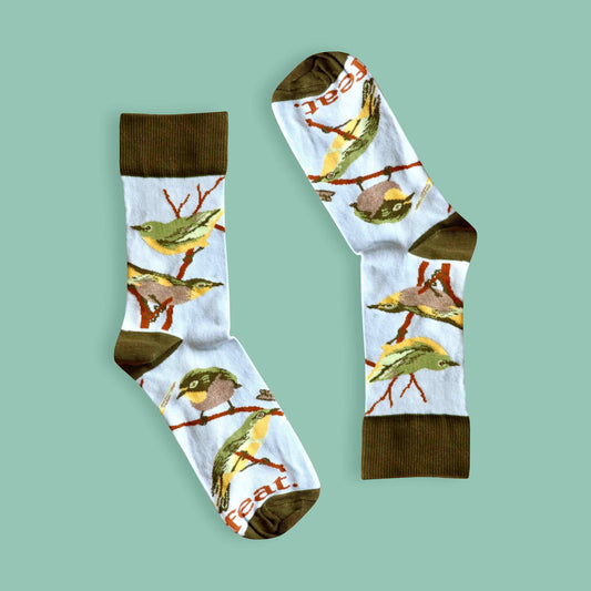 Women’s Cape White-eye Bird socks | Designer socks inspired by birds of South Africa