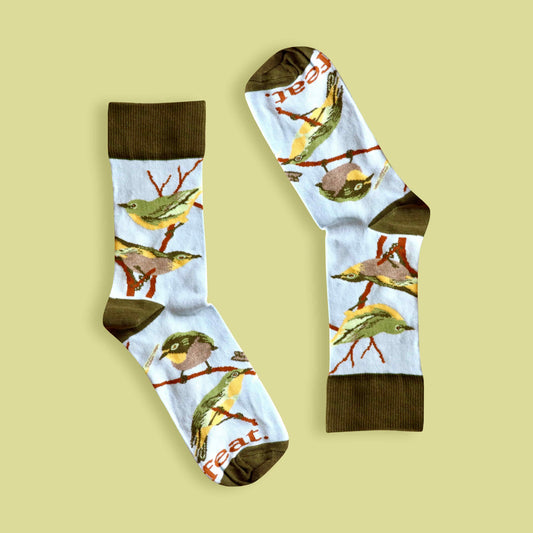 Women’s Cape White-eye Bird socks | Designer socks inspired by birds of South Africa
